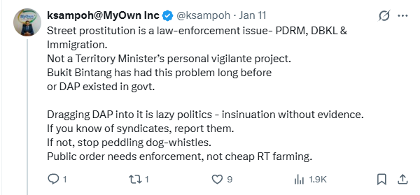 That said, perhaps @khalids who started the post, was overly sensitive over the prostitution activities in Bukit Bintang. — Focus Malaysia