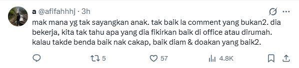 The voice of compassion come in the form of @afifahhhj who said, among other things, that people shouldn’t say bad things about her when they do not know her hardship.