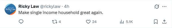 Towards this statement, netizen @rickylaw said to make single income households great again. If the mother is not burdened by financial difficulties, perhaps she could have done a better job raising her child.