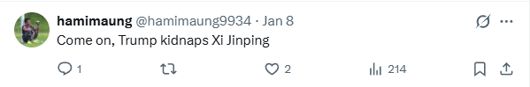 Perhaps the best comment came from @hamimaung9934, who suggested Trump kidnap Xi Jinping.