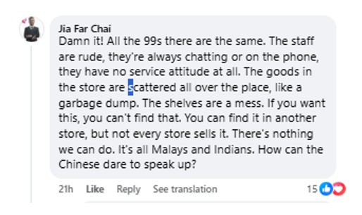 Here the venom was directed at “rude typically Malay or Indian staff” who “are always chatting or on the phone”. This commenter wondered how Chinese customers even dared to speak up to get some form of service.