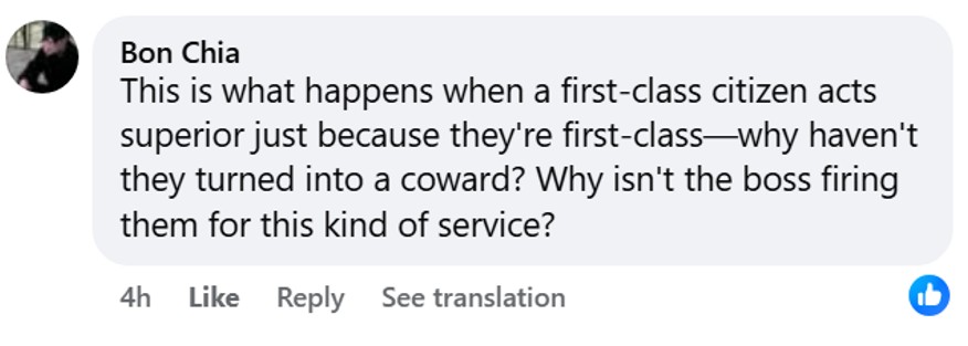 Another made reference to “first class citizens” which highlight the deep schisms that exists in Malaysian society. He asked why hasn’t the employee been terminated for having a superior attitude?