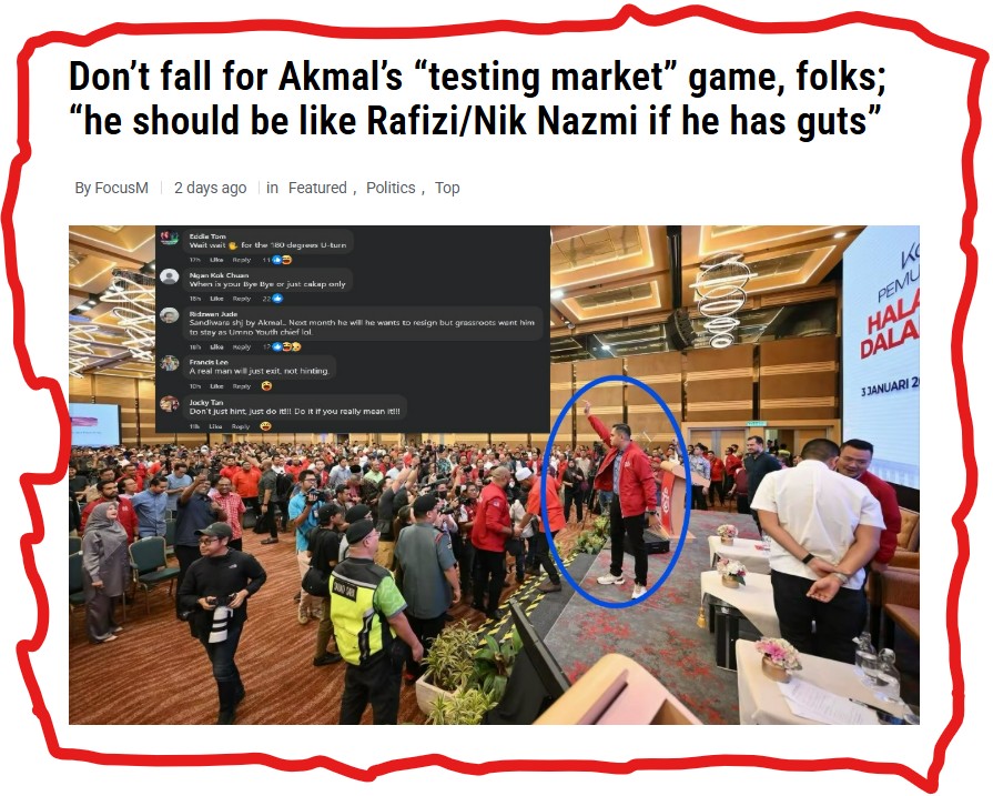 Commenting on Akmal’s resignation speculation, UMNO secretary-general Datuk Dr Asyraf Wajdi Dusuki contended that he has yet to receive any official notification or “black-and-white” confirmation while stressing that the party’s leadership would not rely on social media posts or unverified claims on the matter.