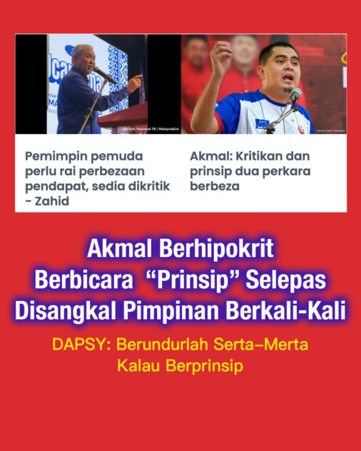 DAPSY chief Woo Kah Leong – who in recent times has turned Akmal’s biggest detractor – has most recently jibed his UMNO counterpart as being a hypocrite for not resigning immediately given his “I shall not budge from principle” rhetoric has become a joke.