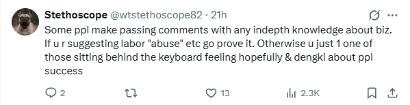 But the founder of 99 Speed Mart has his supporters too. @wtstethoscope82 said that the weight is on the people who suggest that the company is abusing its workers to prove their claim. Otherwise, they are just being jealous of other people’s success.