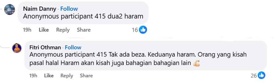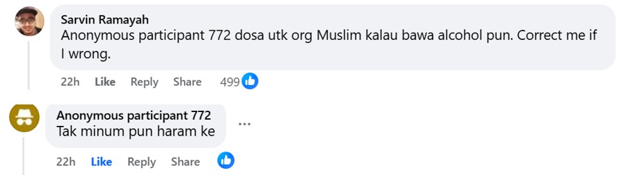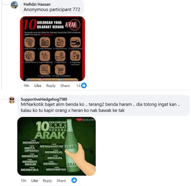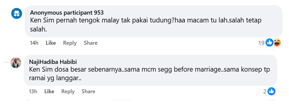 Some went even further by using Muslim women who do not wear tudung as an analogy. They exist but that doesn’t mean it is not haram. Another even equated that with pre-marital s*x, arguing that many are aware it is forbidden but still do it anyway.