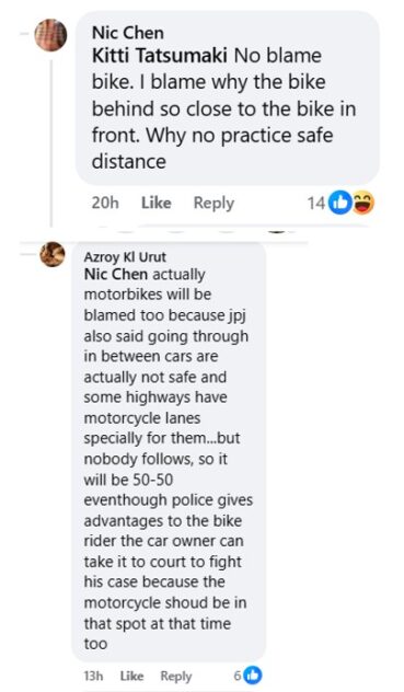 Some even sought to deflect the blame from the child onto the speeding bikers who shouldn’t be in the centre splitting lanes and cutting through traffic.