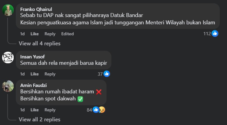 Inevitably, his slew of social media outreach touched on the raw nerve of many sympathisers who began to vent their anger on DAP and Yeoh who is trying her utmost best to build a healthy rapport with the Malay majority city folks, including the record low Bazar Ramadan rental rate despite being the first non-Muslim FT Minister.