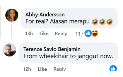 Similar sentiments were also expressed on the Malaysian Gazette’s Facebook page with one commenter wryly noting the ingenious reasons proffered – “from wheelchair to janggut (beard) now”.