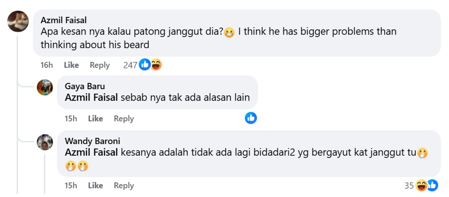 The reaction across social media was one of disbelief. This threat of a beard trim was shared on Astro Awani’s Facebook platform with some even questioning the veracity of the report.