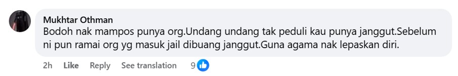 On the Suara Viral FB site, there were presumptions of guilt by one commenter who insinuated the fact that the defendant was abusing religion to fund an escape route.