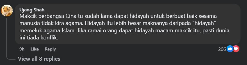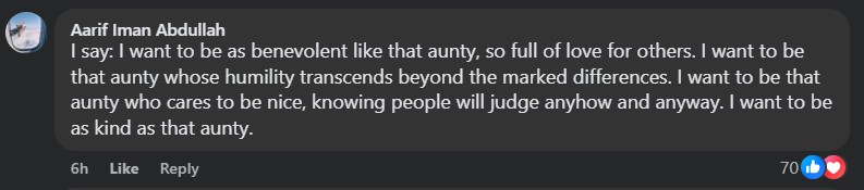 Thankfully, the Chinese aunty has inspired one Muslim convert to be as benevolent and able to shower love and kindness to others.