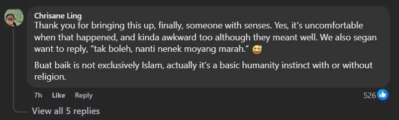 One commenter even applauded the “Chinese aunt who has long been received hidayah (divine guidance) to do good to fellow human beings regardless of religion”.