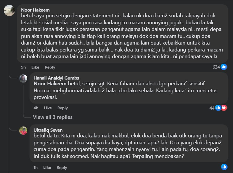 Hey my Malay brothers and sisters. Would you like it if someone tell you or your family member, “May you be guided to convert to Christianity, Hinduism or Buddhism”?