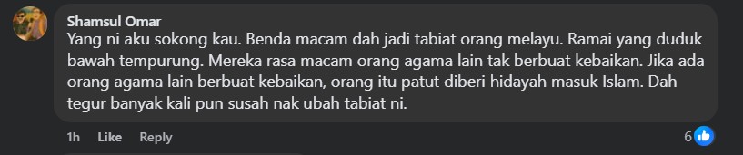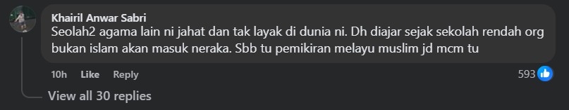“They’ve been taught since primary school that non-Muslims will go to hell. That’s why Malay Muslim thinking is like that,” revealed the Sarawakian commenter.