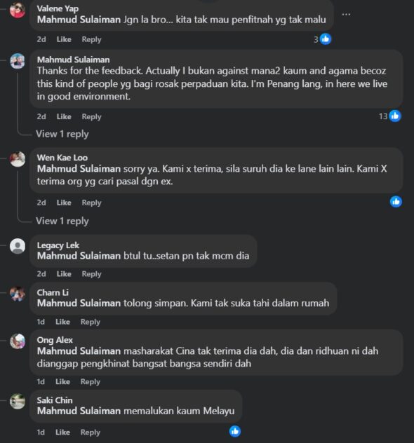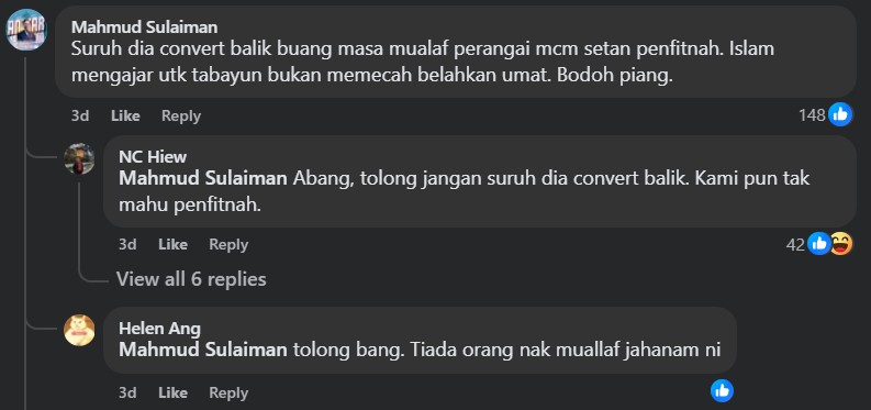 “Brother, please don’t tell him to convert back. We don’t want a slanderer either,” quipped one Kedahan Chinese with many echoing a similar sentiment.