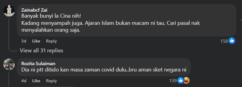 One Muslim commenter who hailed from Pasir Puteh, Kelantan but lives in Kuala Lumpur slammed Firdaus’ tendency to find fault with others which she claimed “does not run parallel with Islamic teachings” while another ‘wickedly’ wished that he should have been “put to sleep during the COVID pandemic”.