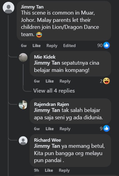 “This scene is common in Muar, Johor. Malay parents let their children join Lion/Dragon dance team. 😂,” revealed one Jimmy Tan with another commenter exclaimed that “there’s nothing wrong with learning any art that exists in the world”.