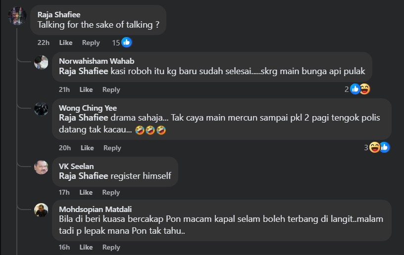 That the skies “had turned into war zones even after 1am despite heavy showers” last night (Feb 17) further reinforced the furore among Malay netizens on the lopsided law which one claimed is due to the fact that “cops are afraid of the Chinese but have no qualms to show their heroics on the Malays”.