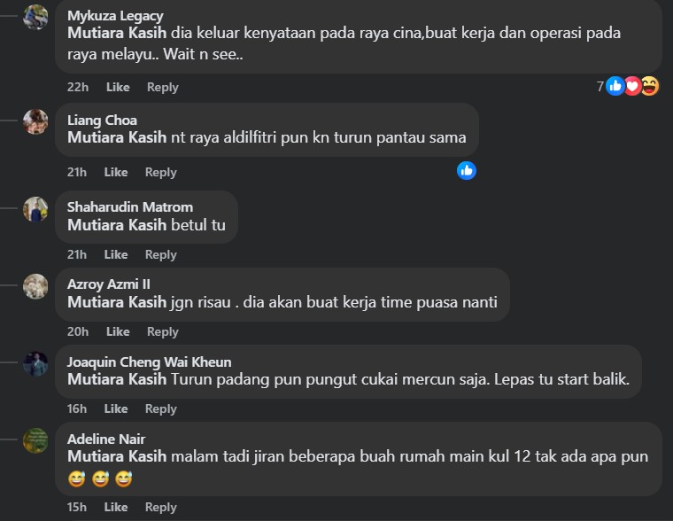 One even berated Fadil that both his advice and the law “will only come to force during Aidilfitri – not other festivities – for they’re now full (insinuation of having been bribed) and enjoying their holidays”.