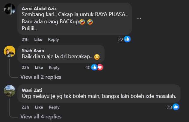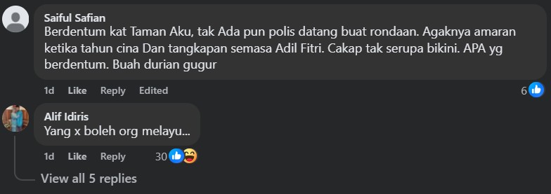 “Only Malays can’t play (firecrackers), other races can play without any problems,” fumed one commenter.