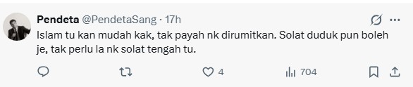 The key intention is that there is so much knowledge that non-Muslims can gain from netizens’ reaction to the woman’s action which was prompted by her LRT being “stuck more than an hour” despite the availability of alternative praying methods to the typical standing posture when one is in a public transport.