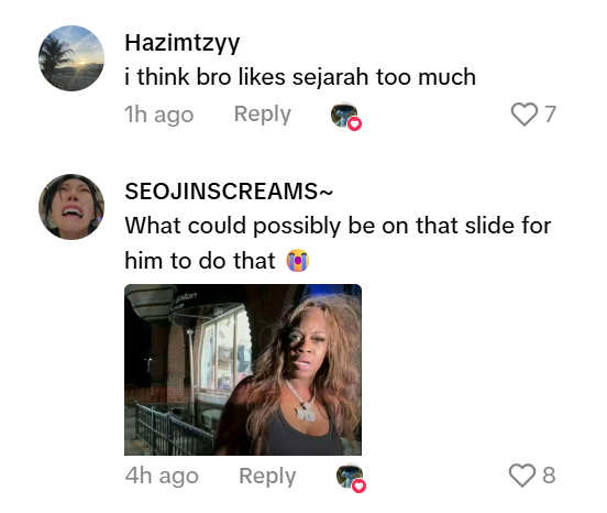 “What could possibly be on that slide for him to do that,” asked a very confused SEOJINSCREAMS~ in the comment section while Hazimtzyy said, “I think bro likes history too much.”