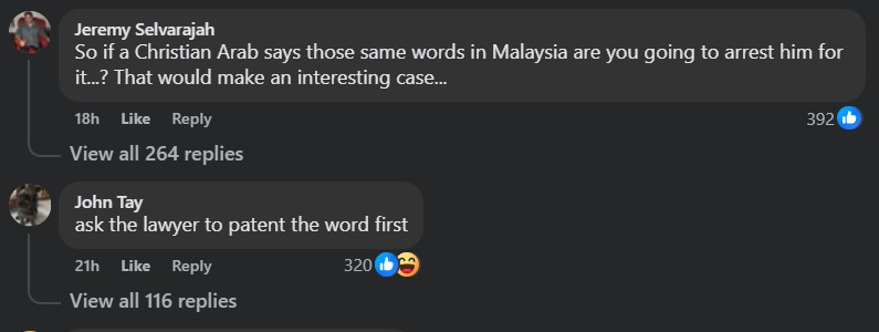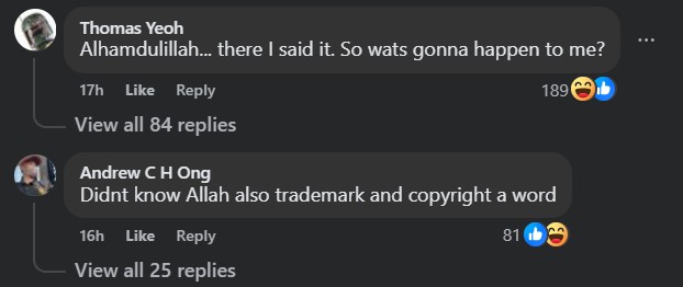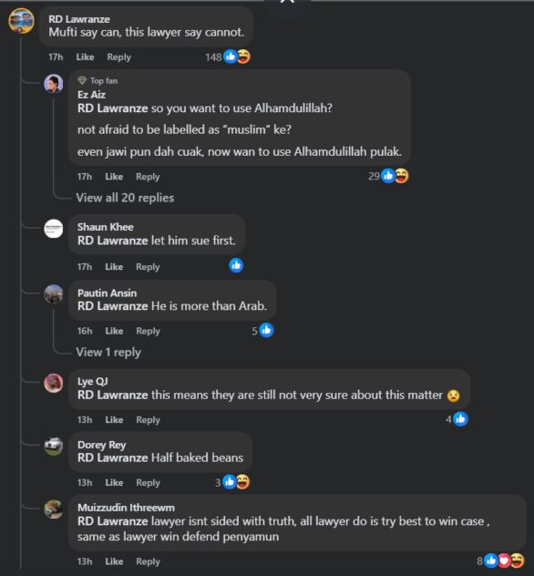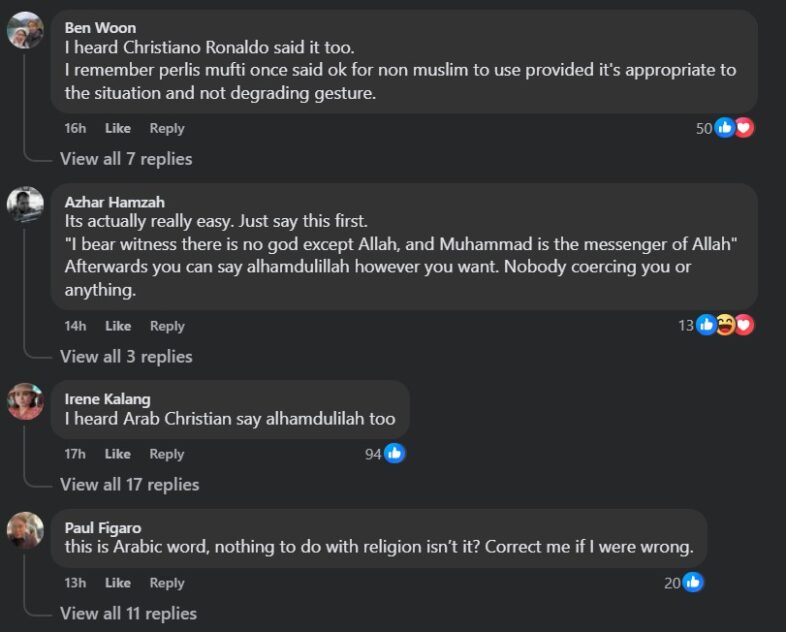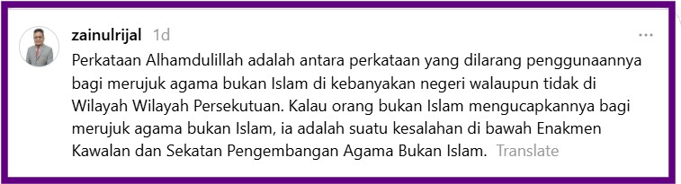 “Alhamdulillah is one of the words prohibited from use to refer to non-Islamic religion in most states although not in the Federal Territory (FT),” he posted on Threads.