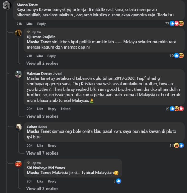 One commenter shared that this was no biggie in the Middle East as locals there delighted in foreigner – presumably non-Muslim – greeting them with such terms.