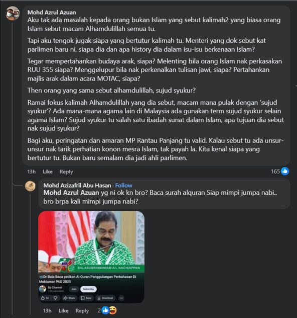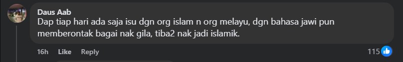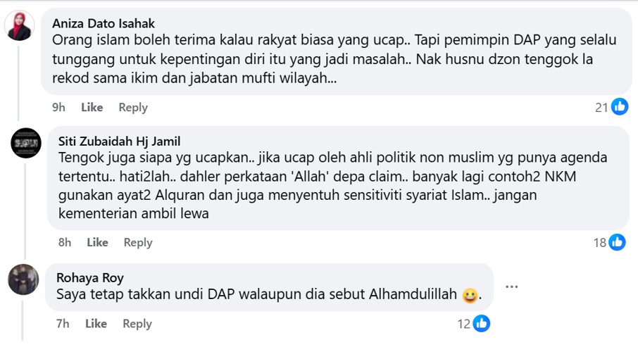 His opinion was shared on Astro Awani’s Facebook page which drew plenty of reactions. Again, the general sentiment is such that this was all political theatre to fish for Muslim votes by DAP which is perceived by many Muslims to be anti-Islam.