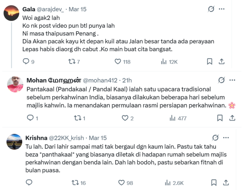 The latest example involves a video of a Hindu ceremony in Penang that has been making the rounds. In the clip, Hindu devotees along with a priest is seen placing a wooden pole in the ground while prayers are conducted.
