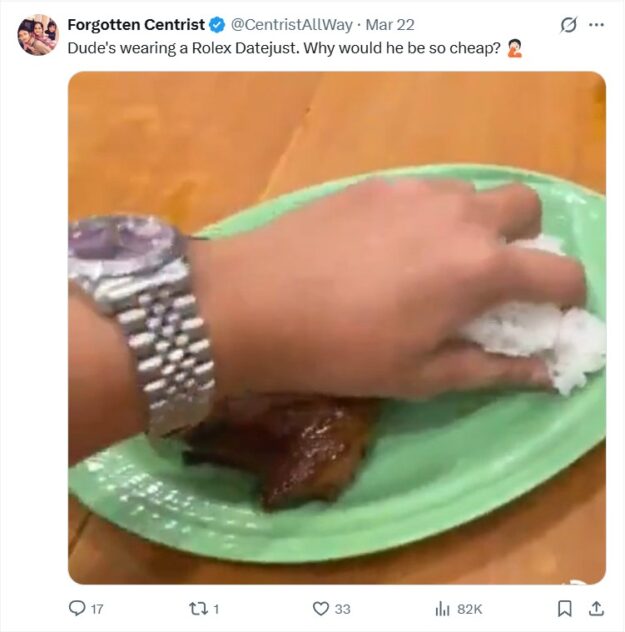 Then there was a very observant @CentristAllWay pointing out the fact that the thief was wearing a Rolex.