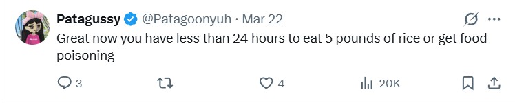 Also, netizen @xanderP0P said it wasn’t worth the effort, sitting there at the table for hours just to get $5 worth of unseasoned rice in a smelly plastic bag.