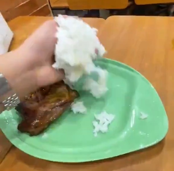 In a video post on X, netizen @akafaceUS shows a greedy customer in a restaurant exploiting the unlimited rice refill perk.