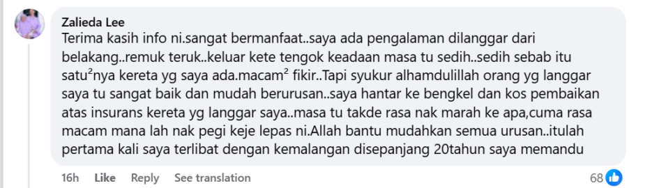 Taking to Facebook, legal practitioner Mohd Arizan shared a step-by-step guide for motorists involved in minor collisions, offering practical advice to prevent the situation from escalating.
