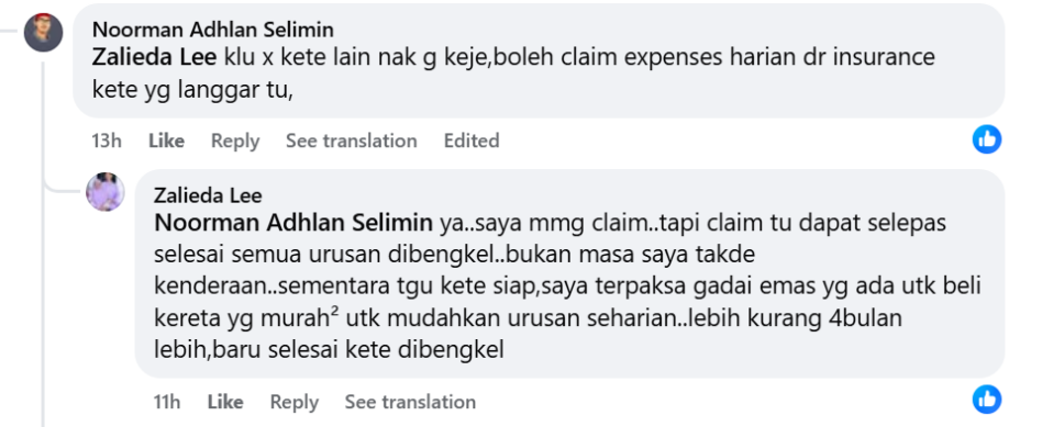 One commenter shared her experience as a first-time accident victim, describing the stress of being without her car.