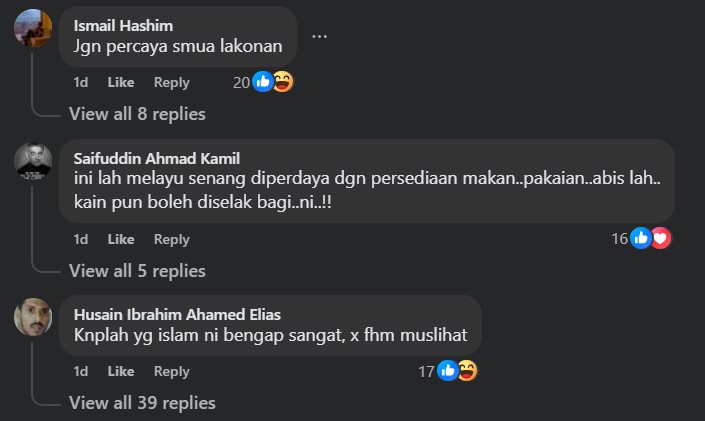 As Madani backers encouraged Yeoh to ignore noises from the disgruntled, many of the presumably Opposition-slant commenters continued to mock the former youth and sports minister by appealing to Muslims not to easily fall for the charade “just because of free food and the way of dressing”.
