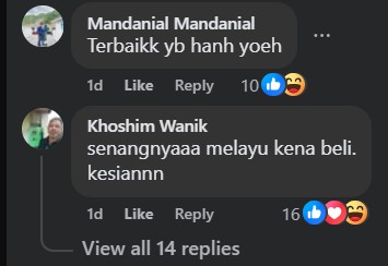 Lamenting that “Malays are easy to be bought over” or are “easily forgetful of their past”, the political motivation of the haters is obvious – Yeoh is targetted for her DAP affiliation and so do the Malays MPs in the party.