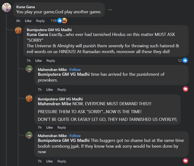 “You play your game, God play another game,” jibed one commenter with calls reverberating for those who have blatantly implicated Hindus in the matter to apologise.