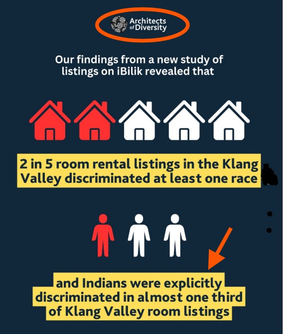 What is certain, however, is that a report by Architects of Diversity (AOD) has found that room rentals in the Klang Valley that accept Indian tenants cost on average 11.2% more (about RM74 extra) compared to those that exclude the community, effectively imposing a “discrimination premium”.