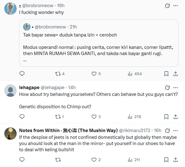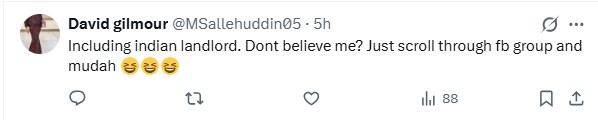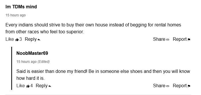 “Every Indian should strive to buy their own house instead of begging for rental homes from other races who feel too superior,” he quipped.