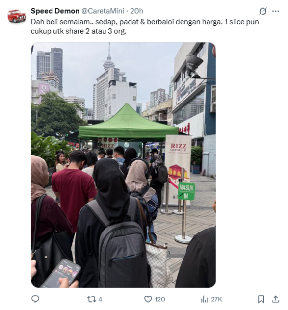 According to @mynewshub, the man sold a slice of his cake, also known as Rizz Quesillo, for RM15.