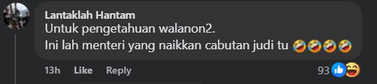 This was when one presumably opposition-slant commenter reminded Madani backers that the Badminton Association of Malaysia (BAM) president was “the minister responsible in raising the number of gambling draws”.