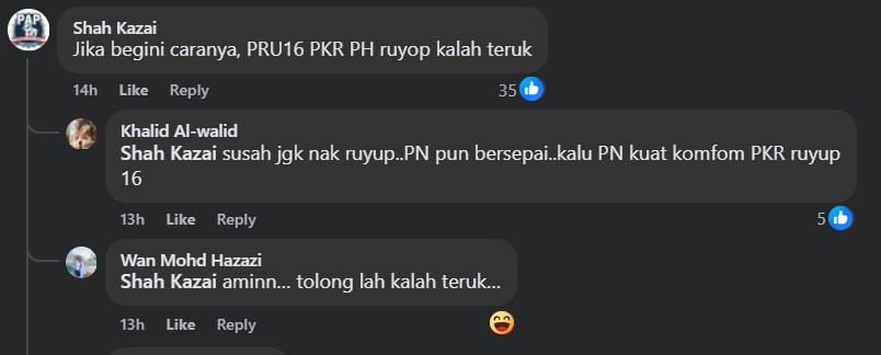 Well, another detractor viewed the latest development as “a tell-tale sign of severe defeat” by PKR-PH (Pakatan Harapan) in the upcoming 16th General Election (GE16).