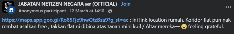 This follows images that have gone viral showing a shrine built in the common walkway in the Desa Tanjung apartment in Puchong, Selangor.