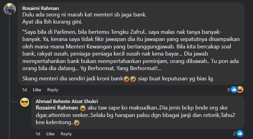 Interestingly. one banker revealed that Sim is not the only minister who sided banks for former finance minister Tengku Datuk Seri Zafrul Aziz, too, is known “to be an even more biased bank crony” till he was previously jibed by Prime Minister Datuk Seri Anwar Ibrahim.