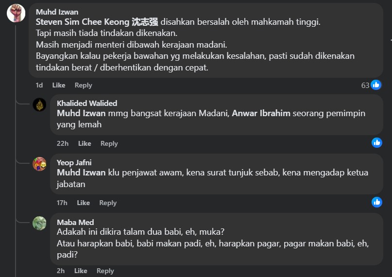 “Steven Sim Chee Keong 沈志强 was found guilty by the high court. But still no action was taken,” he lamented.