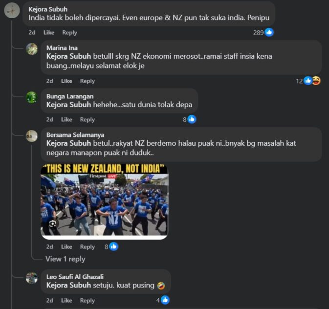 Another looked abroad to drive home the point of Indians cannot be trusted by claiming that “Europe and New Zealand dislike Indians”.