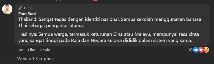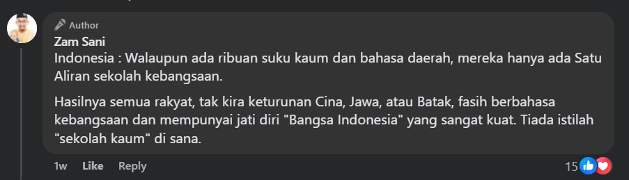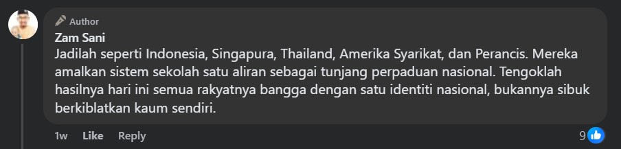 “All are absorbed into the National School. There are no more ‘islands’ that make these children feel as if they’re living in a foreign country,” espoused Zam Sani who is also a real estate consultant in a recent Facebook post.