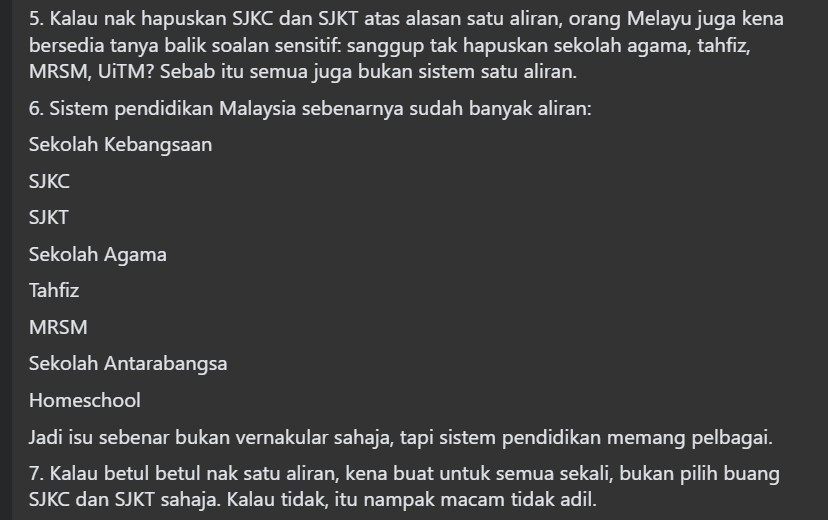 Strait of HormuzSo the real issue is not just vernacular schools but the education system is indeed diverse. If you really want one stream, you’ve to do it for everyone, not just choose to abolish SJKC and SJKT. Otherwise, that seems unfair. – Focus Malaysia